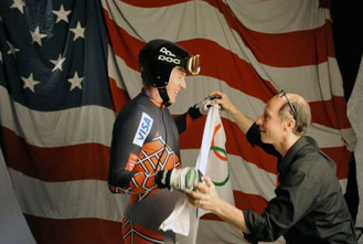 Nathan posing Marco Sullivan during a studio session for the Sochi Olympics.